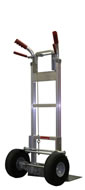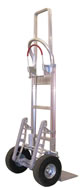 applications: B&P's tread brake hand trucks have been newly re-designed for more adjustability and convenience. The brake handles and brackets now give more adjustibility to the individual's hands. The level style is now a bolt-on design so you don't have to replace the whole handle. The new brake cable is stronger and allows adjustment on the fly without removing cable. Re-designed brake shoes provide a more mechanical advantage for better braking, and the cable bottom is now threaded for adjustment.