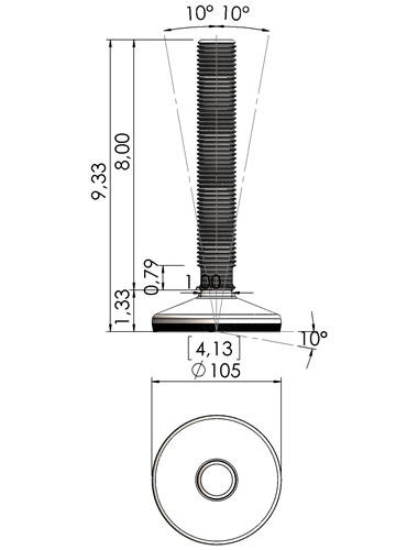 Type HX has an optimal design with a hygienic sealing of the footplate and the spindle. The foot is easy to clean and is approved to be used in the food industry.