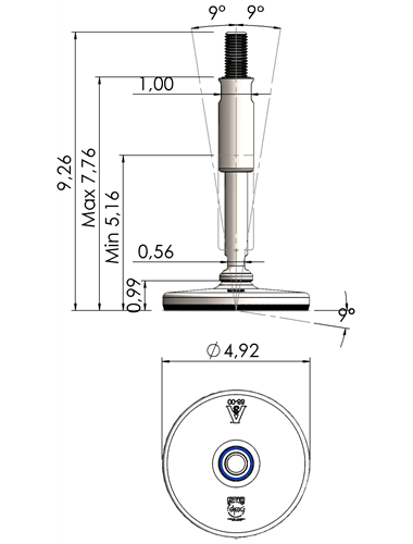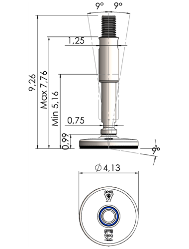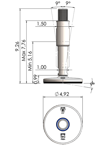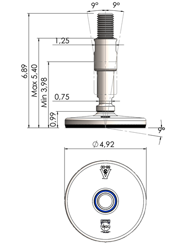 A massive footplate ensuring a 3A and EHEDG certified solution minimizing the cleaning expenses and water consumption. Product DescriptionFoot Plate TypeSpindle Thread (UNC)Thread Length (inches)Total Height (D)Machine Foot Load (N)XHG105-XHJG5859-RHOX5820 Quote Request 4.135/85.9066.8930.300XHG105-XHJG5883-RHOX5832 Quote Request 4.135/88.2689.2624.100XHG105-XHJG3459-RHOX3420 Quote Request 4.133/45.9066.8943.800XHG105-XHJG3483-RHOX3432 Quote Request 4.133/48.2689.2643.800XHG105-XHJG1059-RHOX1020 Quote Request 4.1315.9066.8977.500XHG105-XHJG1083-RHOX1032 Quote Request 4.1318.2689.2677.500XHG105-XHJG5459-RHOX5420 Quote Request 4.131 1/45.9066.89110.000XHG105-XHJG5483-RHOX5432 Quote Request 4.131 1/48.2689.26110.000XHG125-XHJG5859-RHOX5820 Quote Request 4.925/85.9066.8930.300XHG125-XHJG5883-RHOX5832 Quote Request 4.925/88.2689.2624.100XHG125-XHJG3459-RHOX3420 Quote Request 4.923/45.9066.8943.800XHG125-XHJG3483-RHOX3432 Quote Request 4.923/48.2689.2643.800XHG125-XHJG1059-RHOX1020 Quote Request 4.9215.9066.8977.500XHG125-XHJG1083-RHOX1032 Quote Request 4.9218.2689.2677.500XHG125-XHJG5459-RHOX5420 Quote Request 4.921 1/45.9066.89110.000XHG125-XHJG5483-RHOX5432 Quote Request 4.921 1/48.2689.26110.000XHG125-XHJG5483-RHOX5432 Quote Request 4.921 1/48.2689.26110.000 Return to Leveling Mounts Main Page
