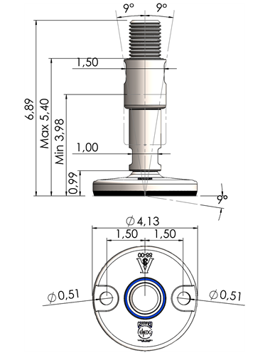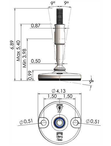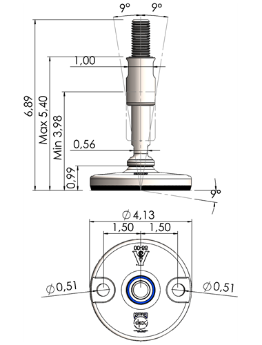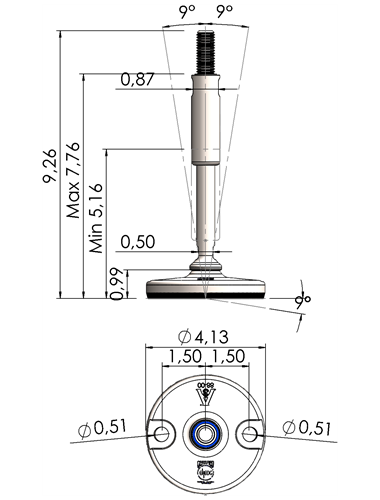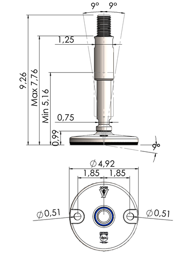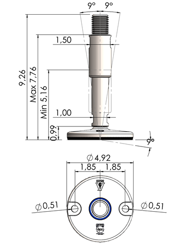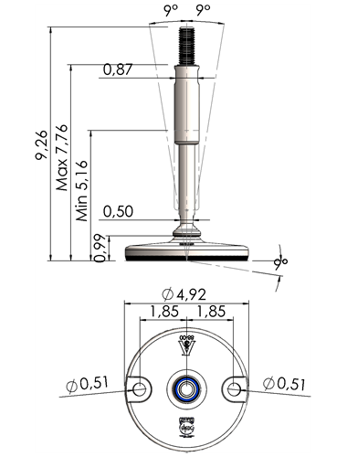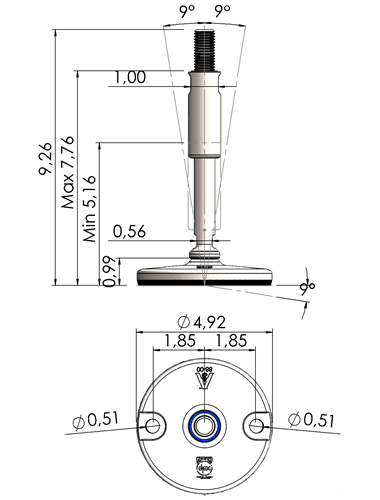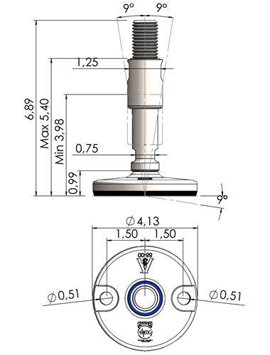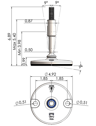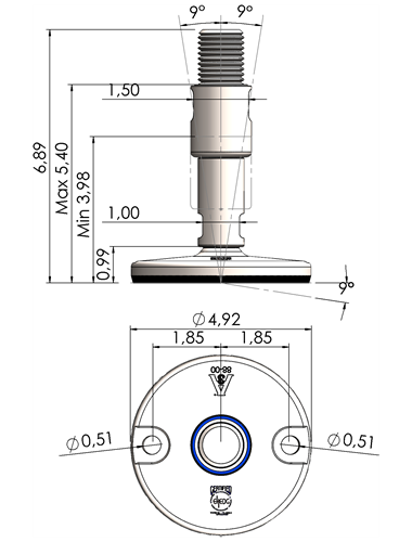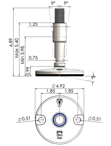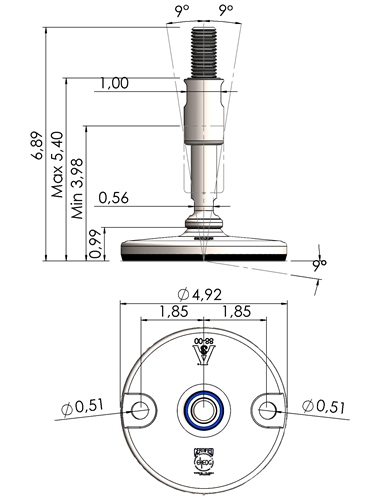 A massive footplate ensuring a 3A and EHEDG certified solution minimizing the cleaning expenses and water consumption. Product DescriptionFoot Plate TypeSpindle Thread (UNC)Thread Length (inches)Total Height (D)Machine Foot Load (N)XHJ105-XHJG5859-RHOX5820 Quote Request 4.135/85.9066.8930.300XHJ105-XHJG5883-RHOX5832 Quote Request 4.135/88.2689.2624.100XHJ105-XHJG3459-RHOX3420 Quote Request 4.133/45.9066.8943.800XHJ105-XHJG3483-RHOX3432 Quote Request 4.133/48.2689.2643.800XHJ105-XHJG1059-RHOX1020 Quote Request 4.1315.9066.8977.500XHJ105-XHJG1083-RHOX1032 Quote Request 4.1318.2689.2677.500XHJ105-XHJG5459-RHOX5420 Quote Request 4.131 1/45.9066.89110.000XHJ105-XHJG5483-RHOX5432 Quote Request 4.131 1/48.2689.26110.000XHJ125-XHJG5859-RHOX5820 Quote Request 4.925/85.9066.8930.300XHJ125-XHJG5883-RHOX5832 Quote Request 4.925/88.2689.2624.100XHJ125-XHJG3459-RHOX3420 Quote Request 4.923/45.9066.8943.800XHJ125-XHJG3483-RHOX3432 Quote Request 4.923/48.2689.2643.800XHJ125-XHJG1059-RHOX1020 Quote Request 4.9215.9066.8977.500XHJ125-XHJG1083-RHOX1032 Quote Request 4.9218.2689.2677.500XHJ125-XHJG5459-RHOX5420 Quote Request 4.921 1/45.9066.89110.000XHJ125-XHJG5483-RHOX5432 Quote Request 4.921 1/48.2689.26110.000XHJ125-XHJG5483-RHOX5432 Quote Request 4.921 1/48.2689.26110.000 Return to Leveling Mounts Main Page
